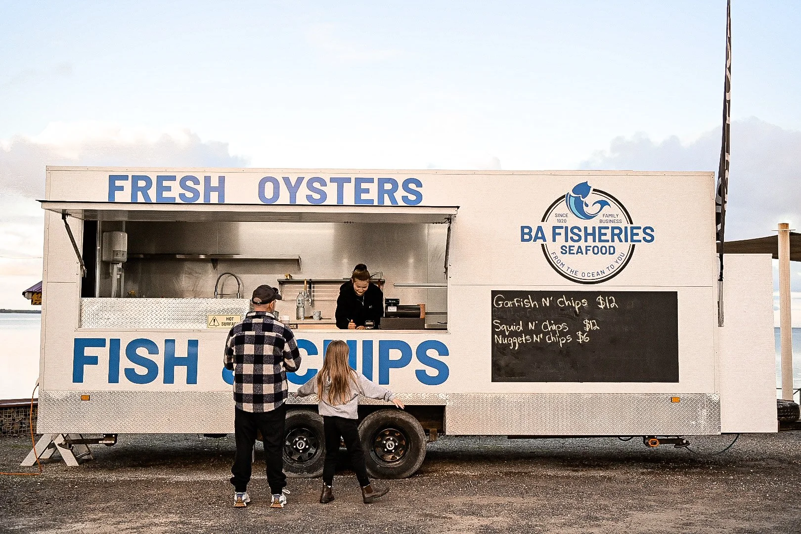 Hey there, foodies and nature lovers! Let me tell you about our recent gem of an evening at Stansbury's foreshore, courtesy of the B.A Fisheries food truck. Imagine: delicious calamari and chips for just $12, and real crumbed chicken nuggets and chips for the kids at a steal of $6. It's the perfect combo for a casual, budget-friendly dinner with the family.